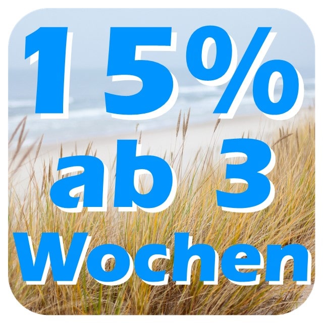Bei einem Aufenthalt ab drei Wochen in der Saison 2026 erhalten Sie 15 % Rabatt auf den Übernachtungspreis.
